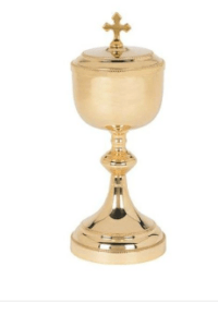 Designed with both tradition and durability in mind, this elegant ciborium features a polished brass or gold-tone body and a secure lid topped with a cross finial — underscoring the sacred nature of the sacrament it holds. It’s crafted to hold a generous number of hosts (for example, up to 175 in one size) and is sized to fit reliably on the altar.